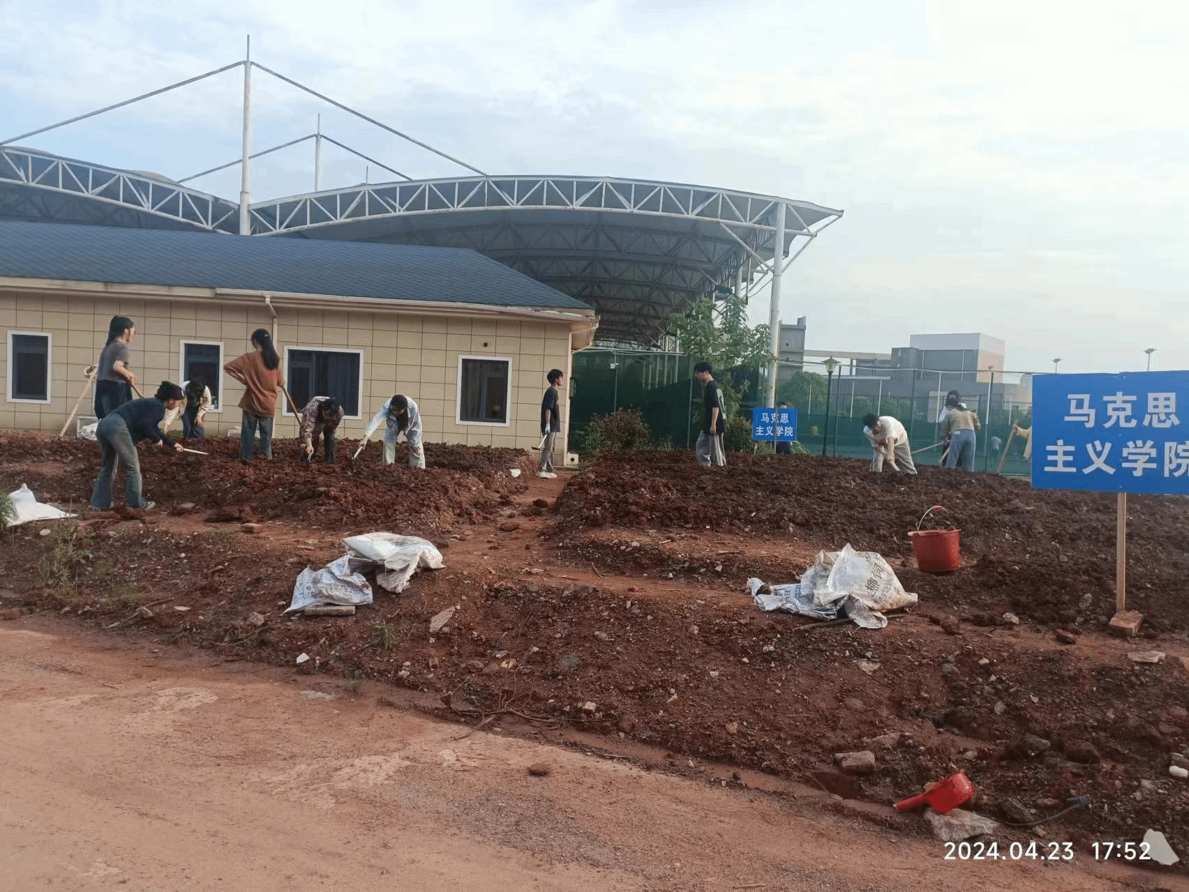 为不断巩固和提升劳动教育成果,营造崇尚劳动的良好氛围,培养学生良好的劳动精神,让学生能够品尝和分享劳动成果,我校开辟了校内耕种劳动教育基地,把劳动教育课程真正搬进了田间地头,并配备全套劳动工具,为全校学生提供了一个亲身参与、实践劳动的平台。4月该基地正式投入使用,分片划拨给各二级学院自主经营管理,师生们共同参与,有序开展了一系列劳动实践。他们撸起袖子、拿起劳动工具,锄地、栽苗,用辛勤的汗水播种着希望的种子。尽管动作稍显生疏,但每一个步骤都显得认真而专注,共同谱写了一曲劳动的赞歌。在劳动的过程中,师生们分工协作、相互配合,默契和团队精神得到了充分展现。