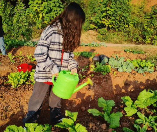在我们持续不懈的努力下,原本被杂草覆盖、板结坚硬的土地逐渐焕然一新:顽固的杂草被彻底清除,厚重的土层被一锄锄翻开、打碎,深藏其下、质地疏松的肥沃新土得以显露。看着这片经过辛勤耕耘、为后续播种做好充分准备的土地,我跟我的同学们都洋溢着付出后的欣慰与期待。
