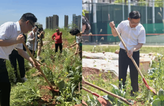 第二天的翻地工作更费力,土地久未耕作,板结得厉害,每下一锄都要使出全身力气。我在田间穿梭,手把手教他们调整锄头角度,“这样发力更省力,还能把土翻得更松”。同学们跟着我一下一下试了试,果然轻松了不少。